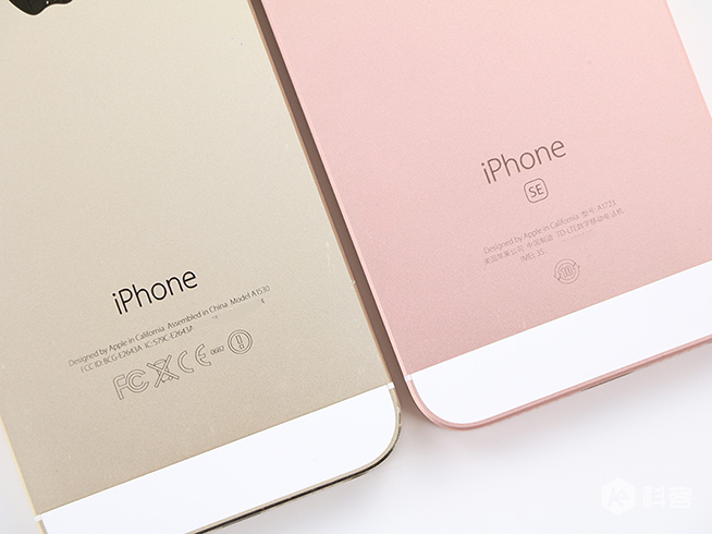 如果不是玫瑰金的話,手里這臺iPhone SE會讓我產(chǎn)生一種回到2年前的感覺。同樣的設(shè)計、同樣的尺寸、同樣的手感,這明明就是一臺iPhone 5s。不過,或許是為了做出區(qū)分,這兩者在倒角切邊上略有不同,iPhone SE是磨砂的而iPhone 5s是拋光的,前者略低調(diào)一些。另外,和iPhone 6s一樣,此次蘋果也把“SE”字樣寫在了機身背面。但說實話,這兩個區(qū)別并不明顯,如果是銀、金、深空灰這三種配色的話,還真有點“雙兔傍地走,安能辨我是雄雌”的意味。