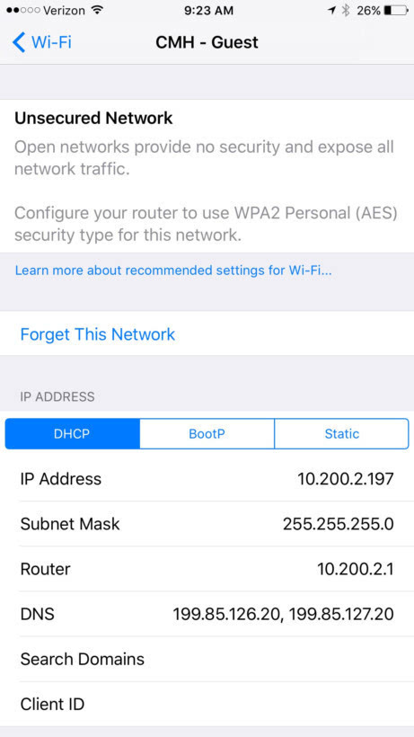 在最新的iOS 10系統(tǒng)中,當(dāng)用戶連接到開(kāi)放網(wǎng)絡(luò)的時(shí)候就會(huì)顯示“安全建議”通知,在WiFi菜單選項(xiàng)中出現(xiàn)這樣的信息:“開(kāi)放網(wǎng)絡(luò)提供不安全的網(wǎng)絡(luò)流量,你的隱私數(shù)據(jù)可能會(huì)被竊取。”此外系統(tǒng)還推進(jìn)用戶盡可能的在路由器上啟用AES加密。
