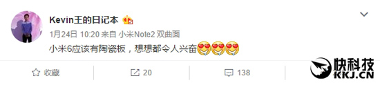 6GB曲面屏!傳小米6三月發(fā)布有陶瓷版
