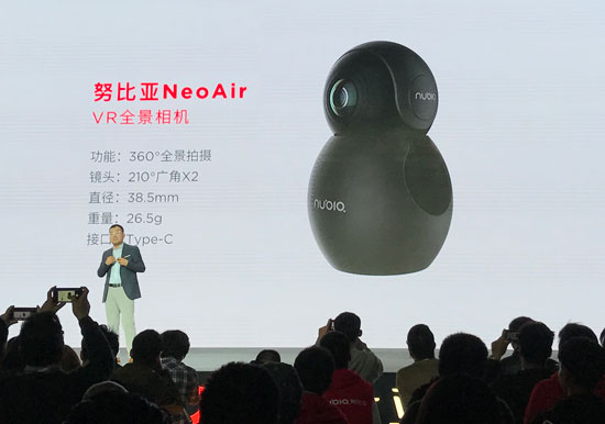 值得一提的是,nubia還發(fā)布了NeoAir全景相機,僅重26.5克,配備兩個210度的廣角鏡頭可輕松拍出全景照片或視頻。其售價為699元。