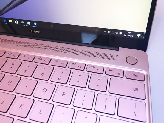 華為MateBook X設計簡約時尚,以金屬材質、側邊曲線收弧及CNC鉆切工藝體現(xiàn)高端質感,配備13英寸顯示屏的前提下尺寸小于A4紙,重量僅為1.05kg,最厚處只有12.5mm。憑借4.4mm的極窄邊框,華為MateBook X成為當前全球屏占比最高的13英寸筆記本電腦。該機提供有深空灰、流光金和玫瑰金多種配色,并引入了在Windows系統(tǒng)上首創(chuàng)的電源鍵與指紋識別二合一設計。