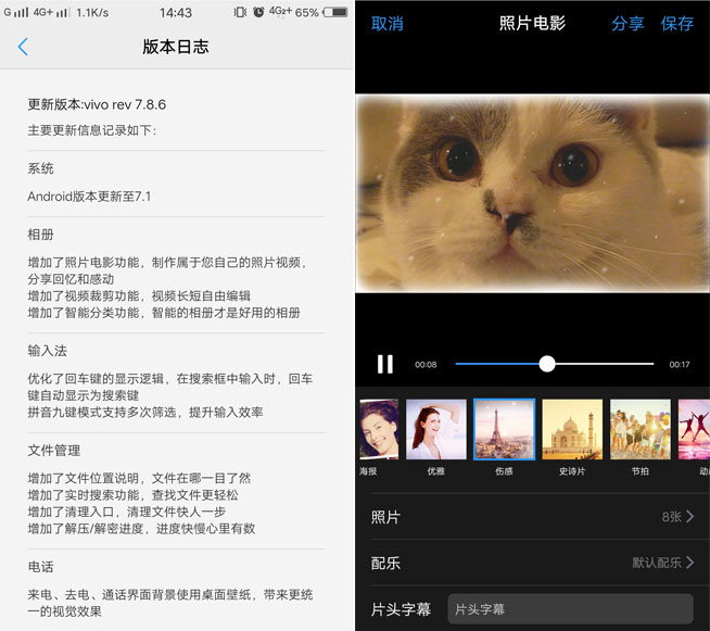 雖說最新的Xplay6庫里冠軍典藏版全球只此一臺,不過這款擁有雙曲面屏雙攝的vivo旗艦機,日前迎來基于Android 7.1的最新版Funtouch OS升級,除了優(yōu)化更到位之外,包括相冊、電話、聯(lián)系人、文件管理等多項功能均得到進一步完善,新增的照片電影功能讓人眼前一亮。