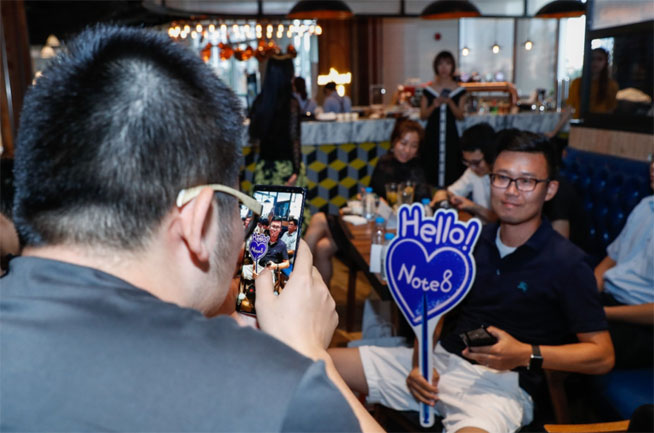 在整個活動過程中,還有一個有趣的小互動環節。邀請現場的媒體朋友蒙住雙眼來找出Note 8。眾所周知,當前手機外觀同質化嚴重,朋友間稍有不慎都可能拿錯手機。不過,這對于三星Note8來說則可以避免此類窘境。