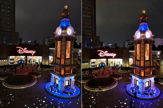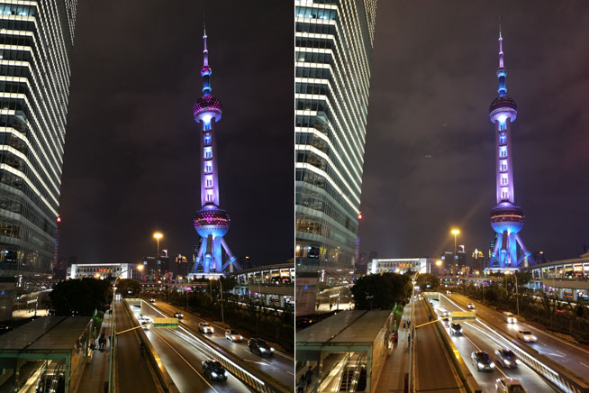 再結(jié)合弱光環(huán)境對比來看,Note 8在夜間用自動擋的表現(xiàn)更勝一籌,不過華為還準備了大招,那就是指尖俠一直挺喜歡的超級夜景模式,借助小腳架的固定,Mate 10 Pro在超級夜景模式下能拍出低噪點、效果震撼的夜景照片,樣張足以說明一切。