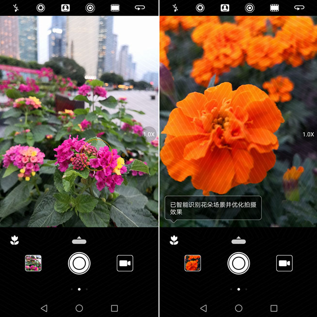如圖所示,拍攝近處花朵時(shí),華為Mate 10 Pro的相機(jī)在取景畫面左下方出現(xiàn)了花朵圖標(biāo),表明智能識(shí)別到花朵場景并優(yōu)化拍攝效果,同理在10余種常見的環(huán)境下Mate 10也能快速進(jìn)行匹配。所以即便是小白用戶,只需花更多心思在所見即所得的拍照取景上,效果這事交給手機(jī)自動(dòng)完成就好。有了如此智慧的AI攝影,相信你也能成為攝影大師哦~