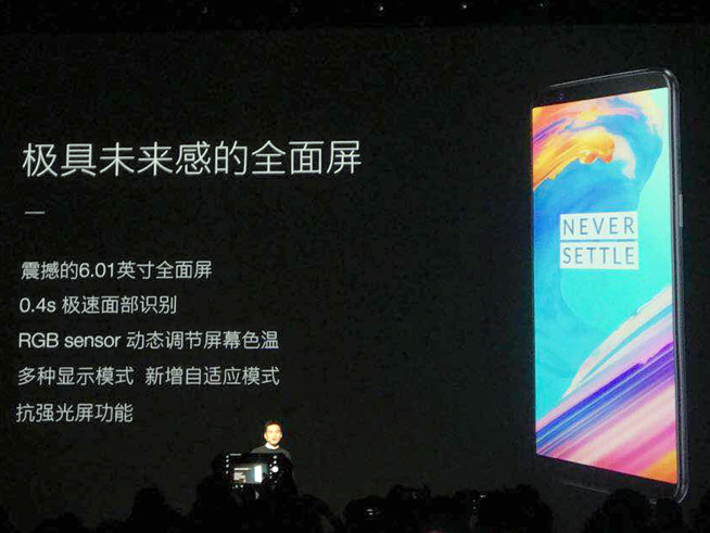 首先是全面屏設計,一加5T配備了6.01英寸18:9的AMOLED全面屏,屏占比達到80.5%。劉作虎表示這些數(shù)字并不是一加手機做全面屏的原因,視覺沖擊才是根本目的,震撼的未來感是一加5T用上全面屏的主要原因。和市面上很多全面屏機型不同,一加5T更加注重細節(jié)的打磨,包括手機頂部和底部堅持弧度設計,看似簡單但真正要實現(xiàn)要花費更高成本和時間。