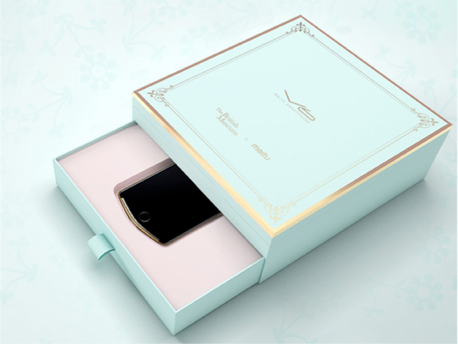 另外,美圖手機·大英博物館限量版的包裝禮盒同樣極具英國宮廷設計風格,盒子主色調仍以水粉藍與茱萸粉為主,附以典雅復古的花紋裝飾,禮盒呈正方形,正面印有“The British Museum ×meitu”和“V6 MEITU SMARTPHONE”相關產品信息。并且,美圖手機·大英博物館限量版的包裝禮盒以女生梳妝盒的設計為靈感,采用抽屜式設計,可見十分用心。