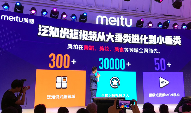 而另一美圖系重磅應(yīng)用美拍,全新改版將直接呈現(xiàn)搜搜、分類和興趣,與此同時還在思考如何在各種小視頻風口中走出差異化路線。同樣是從工具到社區(qū)再到社交的進化路徑,美拍接下來將定位泛知識短視頻,相關(guān)內(nèi)容會具備專業(yè)門檻、粉絲粘性強、時效長三大屬性。據(jù)悉當前美拍已構(gòu)建超過300個泛知識興趣領(lǐng)域,其中在舞蹈、美妝、美食等領(lǐng)域做到了全網(wǎng)領(lǐng)先。此外美拍擁有3萬個以上泛知識短視頻達人,相關(guān)的頂級短視頻MCN機構(gòu)超過50家。