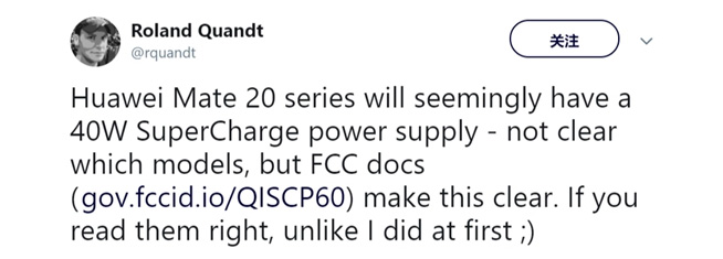 說到快充技術(shù),國產(chǎn)手機(jī)顯然又是全面超車新iPhone的節(jié)奏。以去年華為的Mate 10系列標(biāo)配的SuperCharge技術(shù)為例,相比iPhone 8 Plus的快速充電器快了50%之多。而近期爆料人士@Roland Quandt指出,今年華為Mate 20系列將提供更嚇人的40W充電器,充電效率理論上能比Mate 10系列提升接近一倍。結(jié)合今年年中關(guān)于華為超級快充新進(jìn)展的最新報道,Mate 20系列有望在30分鐘內(nèi)實(shí)現(xiàn)電量從0到100%的充電速度。