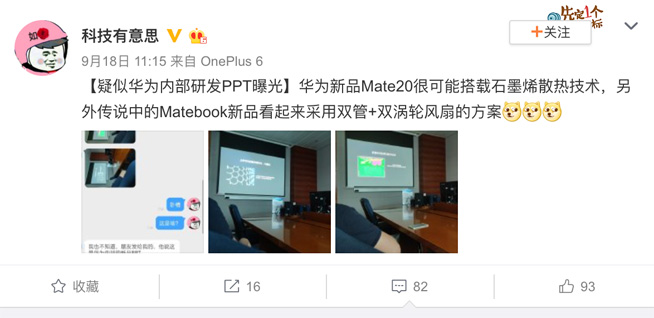 根據(jù)微博知名博主的最新爆料,疑似華為內(nèi)部研發(fā)PPT介紹了“業(yè)界領(lǐng)先的散熱黑科技:石墨烯”,相關(guān)技術(shù)將在華為新品上采用。結(jié)合最近華為計(jì)劃推出新品的節(jié)奏,Mate 20系列顯然是重中之重,而石墨烯作為業(yè)界領(lǐng)先的散熱技術(shù),想必華為會(huì)“好鋼用在刀刃上”,因此Mate 20與之匹配的可能性頗高。