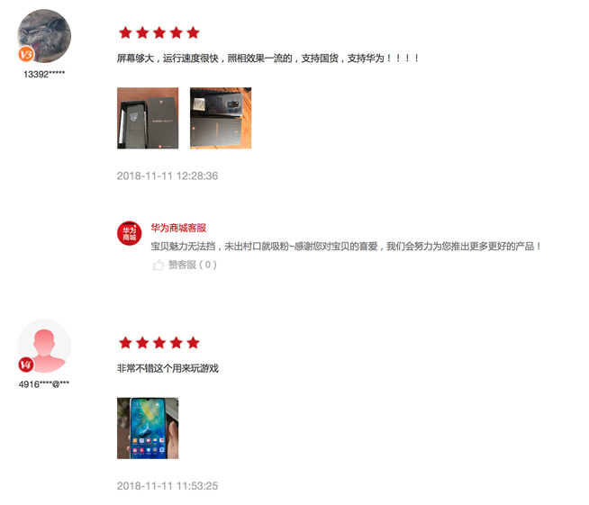再看看天貓平臺(tái),華為Mate 20 X收獲了幾乎全五星的評(píng)價(jià),好評(píng)率達(dá)到4.9分,評(píng)價(jià)的主要標(biāo)簽包括“手機(jī)很棒”、“屏幕很舒服”、“很快”、“外觀漂亮”,另外用戶紛紛點(diǎn)贊其電池大、玩游戲不燙。