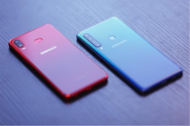 Galaxy A6s錦鯉紅(左)與Galaxy A9s檸沁藍(右)