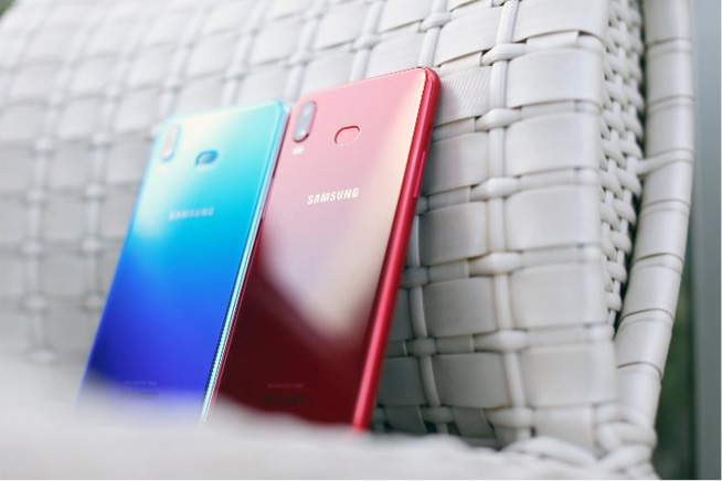 Galaxy A6s花木藍(左)與錦鯉紅(右)