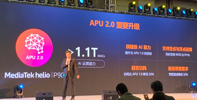 迎合時下AI人工智能的大趨勢,Helio P90著重提升AI算力,芯片內置了升級版的AI引擎APU 2.0,1.1T MACs的AI算力相比P60/P70提升高達4倍,功耗減半,帶寬需求也降低50%。