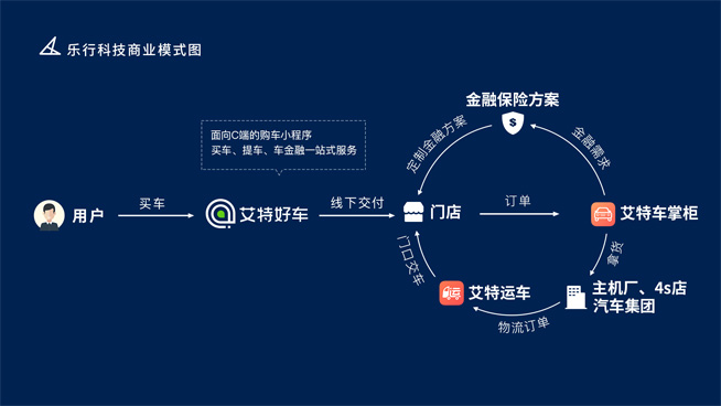 資料顯示樂行科技成立僅一年多時間,創(chuàng)始人兼CEO劉樂君是當(dāng)年的微信一號員工,參與過騰訊郵箱產(chǎn)品的創(chuàng)立,也曾在支付寶任要職。一年多以來樂行科技專注打造一套頂級數(shù)字技術(shù)系統(tǒng),以支撐“互聯(lián)網(wǎng)+汽車流通”整個交易鏈條的高效流轉(zhuǎn)。目前樂行科技已與國內(nèi)十余家知名金融機(jī)構(gòu)達(dá)成戰(zhàn)略合作,基于微信小程序平臺分別有面向B端的“艾特車掌柜”和面向C端的“艾特好車”,前者擁有全國上千家汽車經(jīng)銷商,服務(wù)全廣東省3068家綜合汽貿(mào)店,全國汽車交易量月增長30%;后者為消費(fèi)者提供看車、選車、購車、金融、保險、提車一站式服務(wù)。