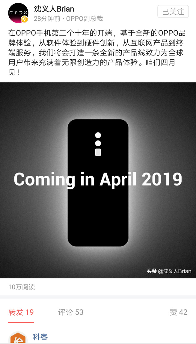 科客點(diǎn)評(píng):4月發(fā)布的OPPO十倍混合光學(xué)變焦技術(shù)新系列新機(jī),預(yù)計(jì)會(huì)與華為P30系列的國(guó)行版“撞期”,一場(chǎng)手機(jī)影像巔峰戰(zhàn)即將上映。