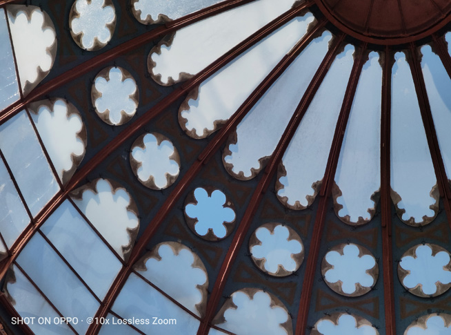 而在下面這組樣張中,則是來(lái)自室內(nèi)的拍攝,10倍變焦后不僅窗花形狀清晰解析,曝光表現(xiàn)也頗為給力,更顯綜合算法的優(yōu)秀。