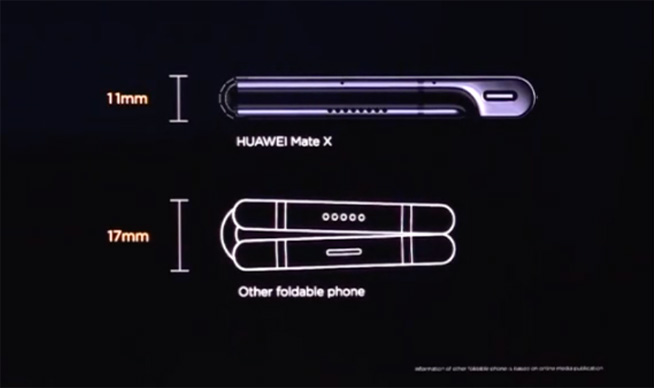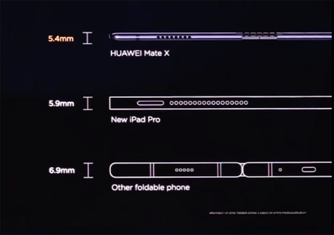 華為Mate X在設(shè)計(jì)之初就非常重視便攜性的問(wèn)題,無(wú)論在折疊屏打開還是關(guān)閉的狀態(tài)之下,都能做到比三星Galaxy Fold輕薄很多。具體來(lái)說(shuō),屏幕合二為一之后,整體厚度僅為5.4mm,甚至比很多智能手機(jī)的厚度都要薄,而在屏幕“分體”之后,整體厚度也僅11mm,比三星Galaxy Fold的17mm薄了很多。