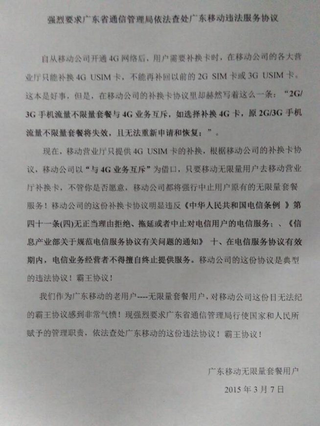 有著和科客君類似遭遇的移動用戶,其實都屬于中國移動至少6年以上的老用戶,約有256萬戶的規(guī)模,早年曾以每月10元、20元或36元的價格開通WAP包月套餐業(yè)務(wù),科客君訂購的便是動感地帶的“20元GPRS月套餐32004”。在移動發(fā)展4G的階段,卻將這批忠實用戶視為“隱患”和“釘子戶”,通過各種手段在2015年初清理至70萬戶左右。多年來,即便國家多次要求運營商執(zhí)行提速降費,即便這批用戶通過各種方式或渠道投訴,移動仍舊視而不見,公然無視廣大消費者的權(quán)益。