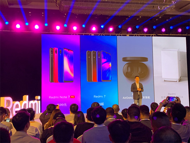 至于Redmi 7則有三個版本,配有后置雙攝、驍龍632處理器、帶P2i生活防水、康寧大猩猩第五代玻璃面板,售價699元起。盧偉冰透露其實原來規(guī)劃的紅米7并非大家看到的這款,而是在他加入小米團隊后決策推倒重做的新機型,雖然是入門機型但整體更有誠意,定價極致,所以敢說“千元內(nèi)無敵”。