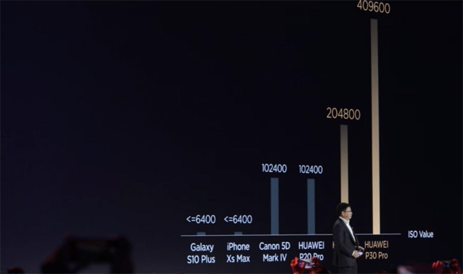 去年華為P20 Pro的相機(jī)ISO值已經(jīng)超過10萬,今年的P30已經(jīng)超過20萬ISO,P30 Pro更是超過40萬ISO。有了如此高的ISO值配合華為超級夜景、雙重防抖、AI攝影等黑科技,P30 Pro在光線極暗的環(huán)境下也能拍出效果震撼的畫面。
