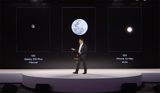 又到了樣張對比環(huán)節(jié),華為P30 Pro在光線相當(dāng)弱的環(huán)境下對比蘋果iPhone XS Max和三星Galaxy S10+的多組拍照樣張,華為P30 Pro能拍得更亮更清晰,而友商產(chǎn)品的畫質(zhì)基本慘不忍睹。華為終端CEO余承東表示,三星Galaxy(銀河)手機(jī)其實是拍不出銀河的,華為則可以。