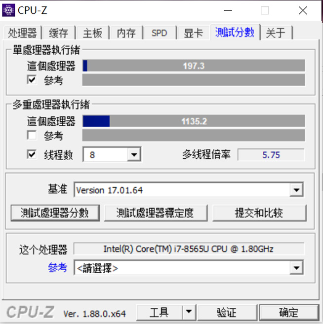 處理器方面,HUAWEI MateBook 14可選第八代英特爾酷睿i7-8565U或i5-8265U的配置,第八代配置是追求性能與效率的首選。我們使用包括PCMark 10、GeekBench、CPU-Z在內(nèi)的測試軟件進(jìn)行跑分,實(shí)測果然交出了亮眼的成績。