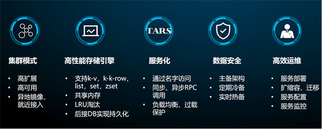 DCache主要用于高性能分布式緩存,數(shù)據(jù)采用內(nèi)存存儲,支持key-value,k-k-row,list,set,zset多種數(shù)據(jù)結(jié)構(gòu),通過連接后端DB實(shí)現(xiàn)數(shù)據(jù)持久化。采用集群模式,具有高擴(kuò)展,高可用的特點(diǎn),支持異地鏡像,就近接入?;赥ARS框架支持名字訪問、同步、異步、單向RPC調(diào)用。同時具有一套可視化高效運(yùn)維平臺,助力開發(fā)和運(yùn)維人員輕松完成服務(wù)部署、擴(kuò)縮容、遷移,以及服務(wù)配置,服務(wù)調(diào)用質(zhì)量監(jiān)控。