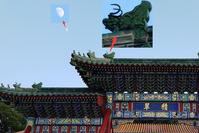 在這組對比圖當(dāng)中,倪飛拍攝了兩個場景,上圖應(yīng)該是廣角端的照片,而下圖則是長焦端的照片。在古色古香的牌樓上,長焦端強(qiáng)烈的壓縮視角將幾頭“神獸”與建筑的木質(zhì)結(jié)構(gòu)、天空中的一輪皓月清晰的定格在鏡頭中。如果說上圖展現(xiàn)的是中國傳統(tǒng)建筑的肅穆、威嚴(yán)、那么下圖就用巧妙的構(gòu)圖將人文景色與自然景象聯(lián)系在了一起,背景也相當(dāng)干凈利索。而網(wǎng)友們也紛紛表示:“看長焦的圖片,清晰度居然這么高,甚至連一點(diǎn)點(diǎn)模糊都沒有?”