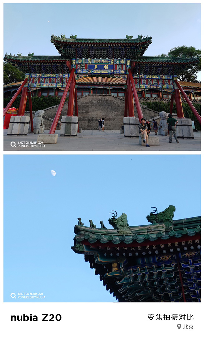 仔細(xì)看長焦端的圖片,不難發(fā)現(xiàn)畫質(zhì)確實(shí)不錯,畢竟之前不少打著“混合變焦”旗號的機(jī)型在變焦之后拍攝都原形畢露,細(xì)節(jié)破碎、線條發(fā)軟,雖然視角確實(shí)是將遠(yuǎn)處的景物拉得很近了,但畫質(zhì)著實(shí)令人不敢恭維。而Z20的長焦端照片似乎沒有任何畫質(zhì)問題,“神獸”身上的浮雕花紋、建筑結(jié)構(gòu)上艷麗的色彩都絲絲入扣,如果不是倪飛放出了對比圖、只是拿來下圖,恐怕也沒多少人覺得這是手機(jī)變焦拍攝的作品。因此大家也非常好奇,努比亞究竟采用了何種技術(shù)令變焦畫質(zhì)如此出色?是否是100%的光學(xué)變焦,或者是鏡片組的素質(zhì)更出色、亦或是變焦算法達(dá)到了更高水平?