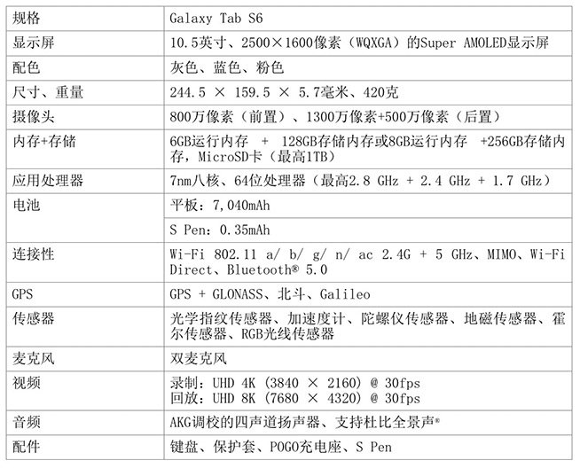 三星Galaxy Tab S6產(chǎn)品規(guī)格參數(shù)添加科客公眾號(hào)kekebat,獲取更多精彩資訊。