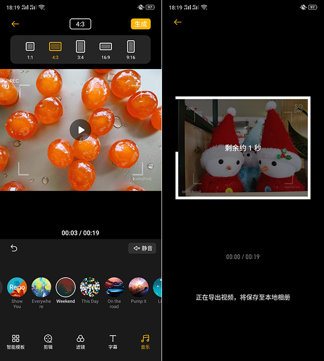 事實上,即錄App還不僅僅提供“傻瓜式”創(chuàng)作體驗,軟件能夠自動匹配音樂,也可以從視頻中識別語音對話生成相應(yīng)字幕,智能化程度很高。此外只要用戶有更多的想法,除了設(shè)置素材排序、長度、轉(zhuǎn)場特效之外,還能對包括智能模板、濾鏡、字幕、音樂等在內(nèi)的內(nèi)容進行DIY,可玩性相當高。評測人員原本對視頻編輯并不感冒,但仔細玩了即錄約半小時之后,已經(jīng)小有成就感,并對視頻后期創(chuàng)作多了幾分好感。