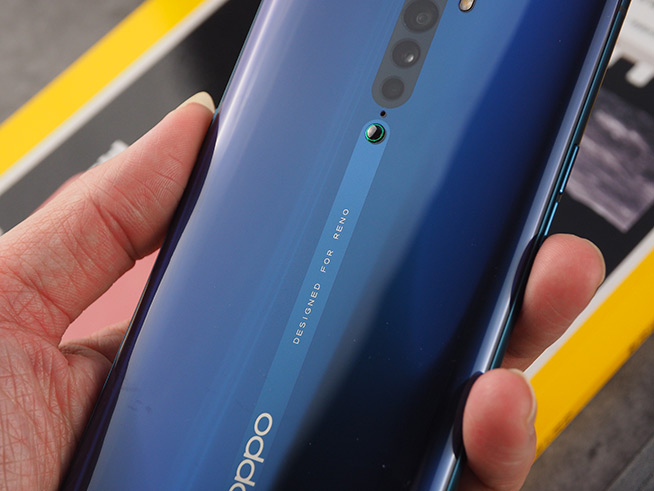 熟悉OPPO的朋友會知道,配色與材質(zhì)創(chuàng)新已經(jīng)成為OPPO的常規(guī)操作了,Reno 2首批提供薄霧粉、海洋之心以及深海夜光三款不同顏色,其中后面兩款均為全新配色,命名中出現(xiàn)了關(guān)鍵字“?!保钥梢岳斫鉃樗{色是此次Reno 2主推的基準色。其中深海夜光版運用放射型微納米紋路的新工藝,內(nèi)含復(fù)雜的紋路與色帶疊加處理,透過3D玻璃后蓋呈現(xiàn)特別的動態(tài)變化效果,可以說三個配色中魅力指數(shù)的佼佼者。