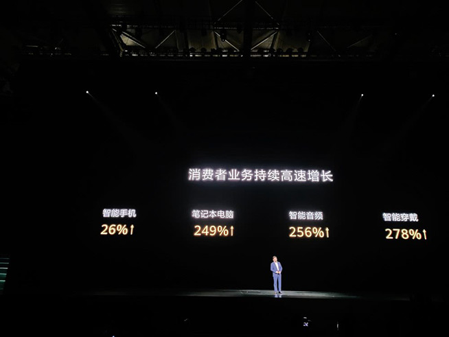 另外,華為筆記本電腦出貨量同比增長(zhǎng)249%,智能音頻類產(chǎn)品以及智能穿戴也分別達(dá)到256%和278%的增長(zhǎng)。