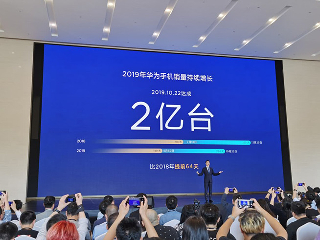 華為手機又創(chuàng)造新紀錄了!10月23日華為官方宣布,10月22日華為完成本年度智能手機出貨量超過2億臺,比去年提前64天達成!華為專門推出2億臺的紀念版Mate30 Pro 5G手機,在華為商城限量發(fā)售。