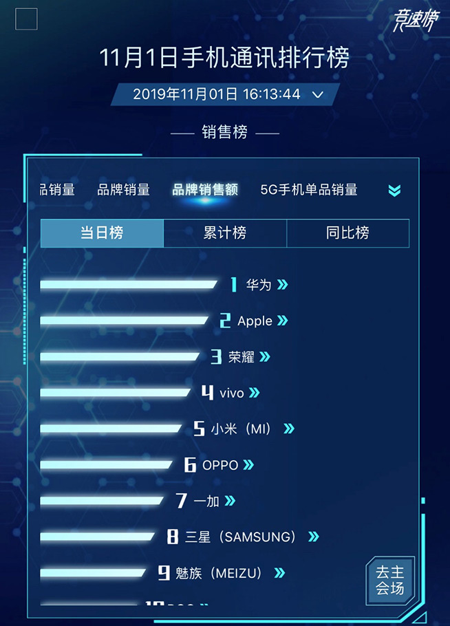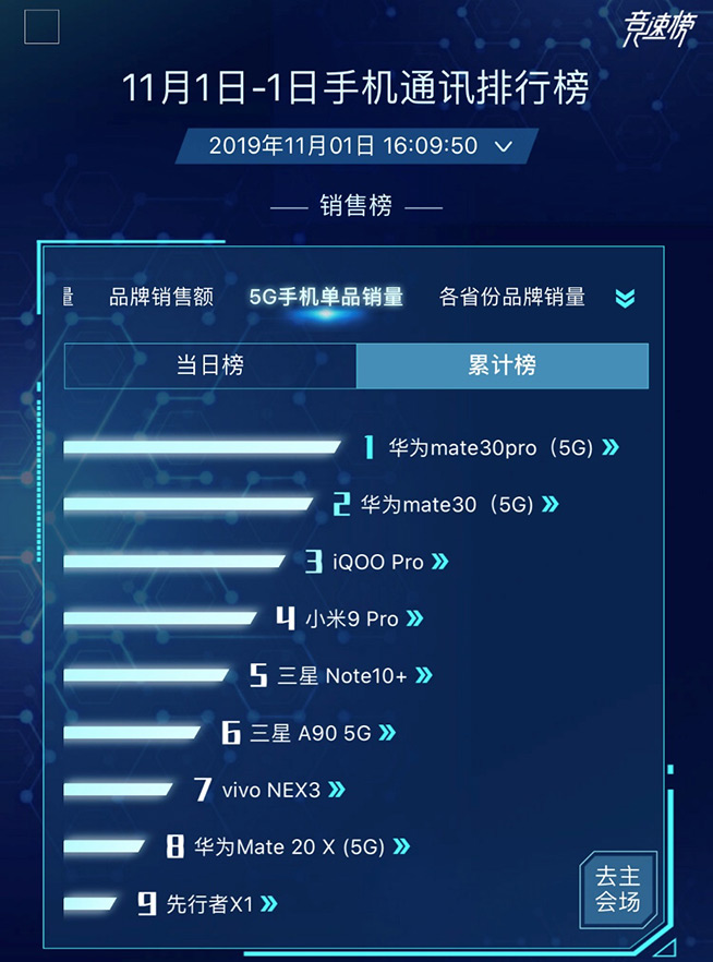 11月1日10:08,華為Mate30系列5G版在華為商城、各大授權(quán)電商、華為體驗(yàn)店、授權(quán)零售商等渠道準(zhǔn)時(shí)開售。根據(jù)京東平臺(tái)給出的雙11手機(jī)銷量實(shí)時(shí)排行榜最新數(shù)據(jù),截止到11月1日16:00,在5G手機(jī)單品銷量方面,華為Mate30系列5G版占據(jù)了排行榜的前兩位位置,而在品牌銷售額方面,華為也是獨(dú)占鰲頭。