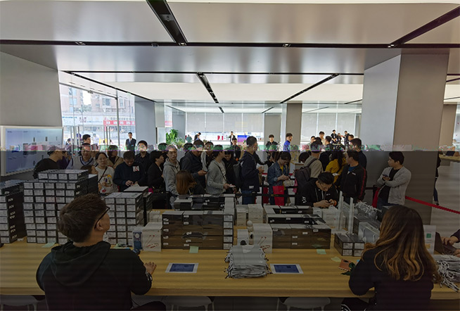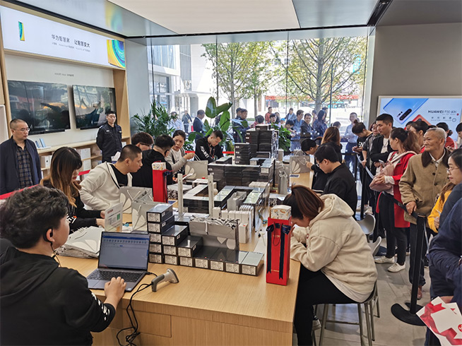 除了線上渠道成功取得開門紅外,華為Mate30系列5G版在線下首銷的表現(xiàn)也值得關(guān)注。從下面兩張圖我們可以發(fā)現(xiàn),華為官方授權(quán)體驗(yàn)店中排隊(duì)購(gòu)買華為Mate30系列5G版手機(jī)的消費(fèi)者人數(shù)眾多,雖然今天并不是周末,但是前來購(gòu)買這款手機(jī)的人依然不在少數(shù)。