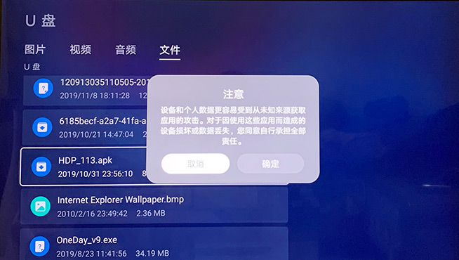 好在,如銀河奇異果、云視聽極光、芒果TV、CIBN酷喵影視、HDP直播、華數(shù)TV、電視家、虎牙TV等視頻類應(yīng)用,實(shí)測都能安裝與正常使用,但軟件提示有版本升級的話,暫不支持直接在智慧屏上進(jìn)行二次安裝升級。建議用戶將第三方應(yīng)用的新版apk安裝包拷貝到U盤,然后通過內(nèi)置“媒體中心”(即文件管理器)找到對應(yīng)的文件進(jìn)行安裝,App支持安裝與否以實(shí)際情況為準(zhǔn)。