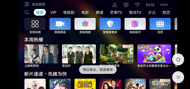 至于界面方面,榮耀智慧屏PRO目前的UI與智能電視流行的UI相近,由于沒有開關(guān)機(jī)廣告,加之系統(tǒng)預(yù)裝應(yīng)用較為精簡,整體感受是清爽易用。若要說有啥不足,主要是缺少了個(gè)性化的元素,界面及菜單可供用戶自行定義的內(nèi)容較少,包括用戶自行安裝的App并不能放置在一屏菜單下,期待后續(xù)能做相應(yīng)加強(qiáng)并提供更多的界面差異化選擇。