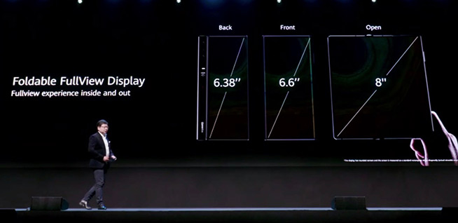 首先登場(chǎng)的是新折疊屏手機(jī)Mate Xs,繼續(xù)為鷹翼式折疊設(shè)計(jì)(外折),折疊開(kāi)啟后的屏幕尺寸達(dá)到8英寸,而折疊合上之后正面屏幕6.6英寸,背面6.38英寸,背面的顯示屏用于自拍取景非常直觀。