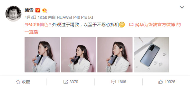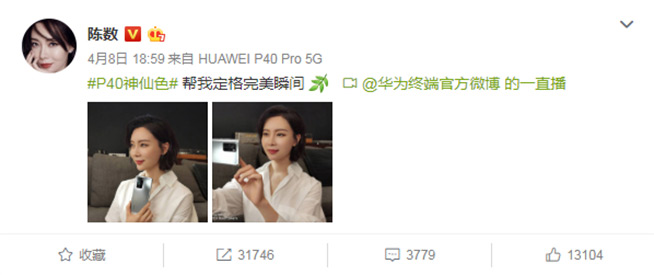 設(shè)計(jì)與攝影,很多時(shí)候其實(shí)都是在追求美,而華為P系列手機(jī)這些年來(lái)正是聚焦并做好這兩大方向,憑借一款又一款出眾的產(chǎn)品,圈粉無(wú)數(shù),甚至在娛樂(lè)圈也不例外。演員陳數(shù)、韓雪和孫怡第一時(shí)間入手冰霜銀,并于微博紛紛曬出喜提華為P40 Pro的小喜悅。