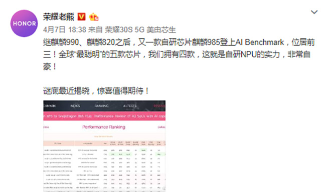 除了強(qiáng)悍的影像系統(tǒng)之外,根據(jù)榮耀高層實(shí)錘消息,榮耀30系列將在性能上有重大突破,集齊麒麟820、麒麟985、麒麟990三款神獸5G芯片,滿足不同用戶性能需求,給用戶帶來極致流暢的用機(jī)體驗(yàn)。值得一提的是,從AI benchmark榜單來看,麒麟985的AI跑分達(dá)到50926分,排名全球第三位,僅次于麒麟990 5G與聯(lián)發(fā)科天璣1000,榮耀30系列的三大芯片均榜上有名,該系列性能表現(xiàn)可見一斑。