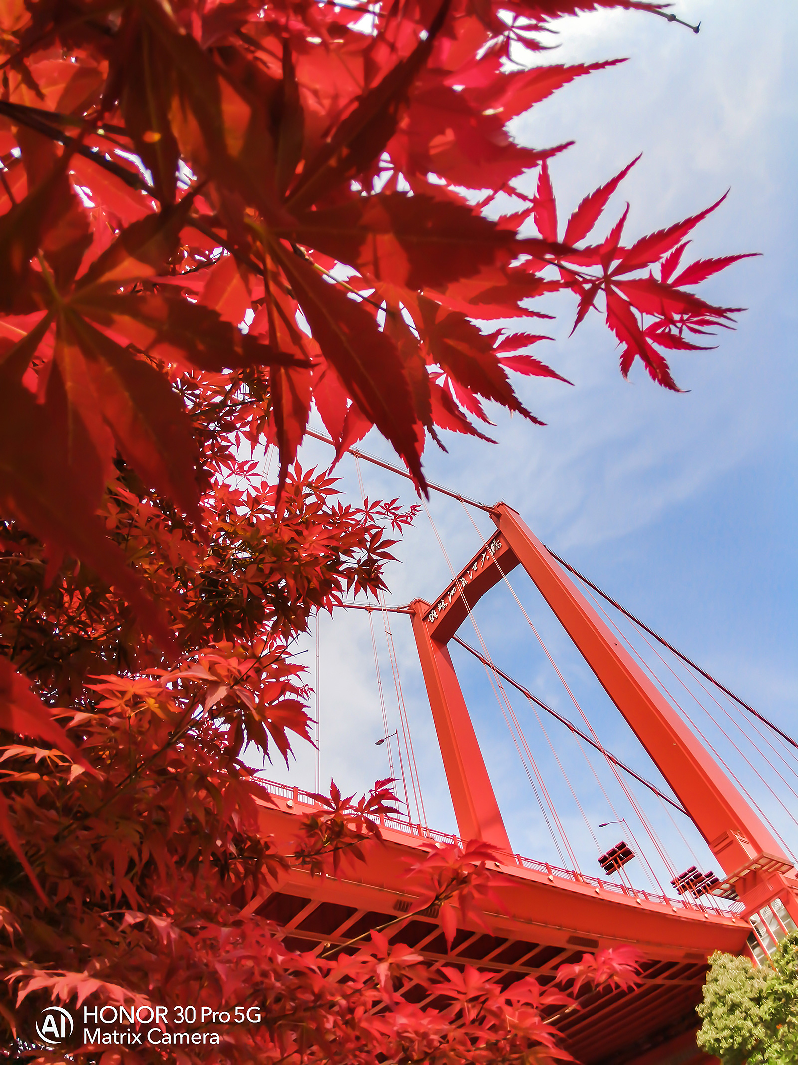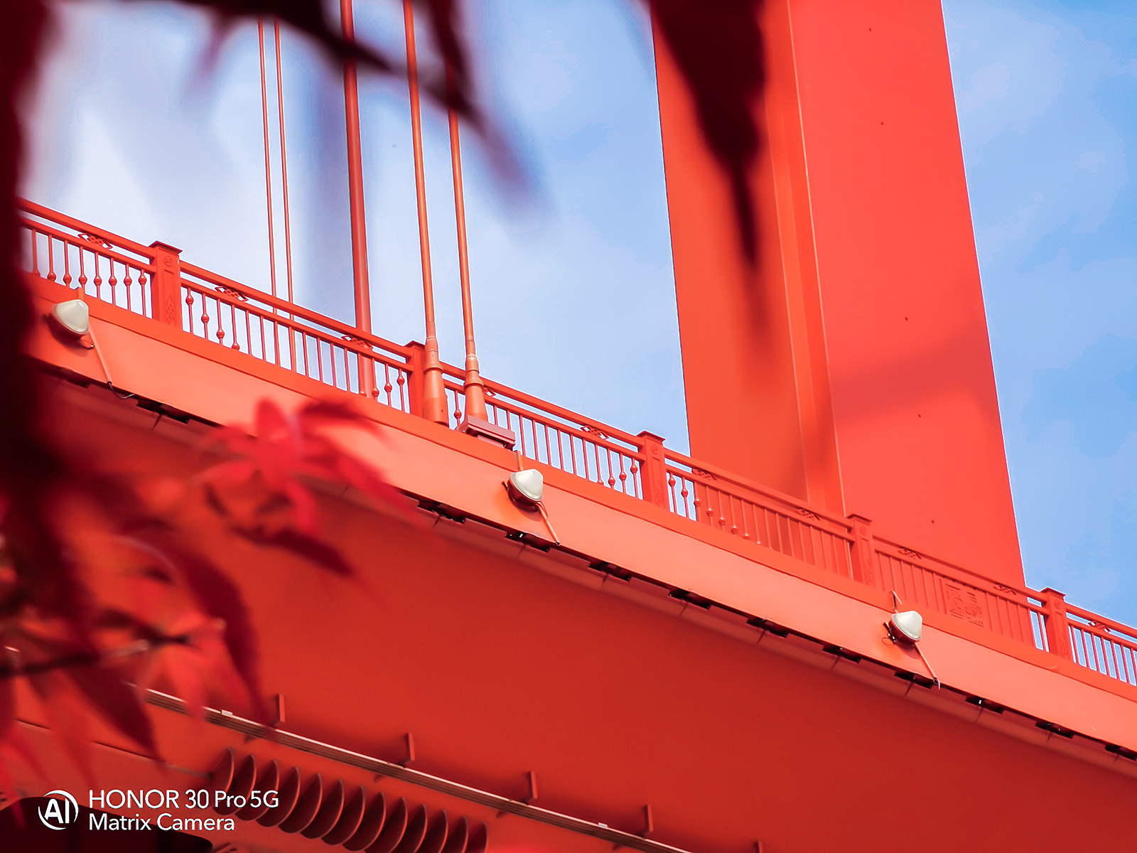在幾組用榮耀30系列手機拍攝的樣張中,攝影師在武漢的實拍照片收獲了頗高人氣。世界首座主纜連續(xù)的三塔四跨懸索橋——鸚鵡洲長江大橋仰拍樣張中,橘紅色大橋旁邊的紅葉映襯之下,整體畫面視覺沖擊力十足,洋溢著堅毅、勇敢的活力。而在榮耀30 Pro潛望式變焦鏡頭的記錄下,橋上護欄、燈飾的細節(jié)依舊細膩還原,彰顯其遠景高倍數(shù)變焦拍攝的極佳解析力。