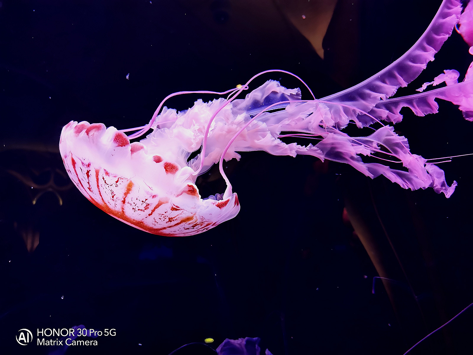 來到三亞室內的水族館,榮耀30 Pro這次挑戰(zhàn)的是運動軌跡多變的水生動物。在光線條件不算理想且隔著玻璃拍攝的條件下,水母、海洋魚游動的瞬間清晰記錄,背后彰顯自動對焦和追焦系統(tǒng)的優(yōu)越性能,讓清晰抓拍成為可能。