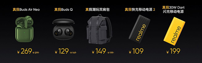 realme 真我Buds Air Neo售價為299元(首銷立減30元,到手價269元),realme 真我快充移動電源2售價為109元, realme真我潮玩雙肩包售價為199元(首銷立減50元,到手價149元),三款潮玩新品于5月25日17點率先開售;realme 真我30W Dart閃充移動電源售價為199元,將于6月12日0點正式開售。添加科客公眾號kekebat,獲取更多精彩資訊。