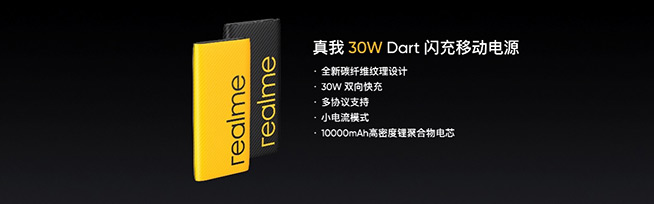 realme 真我快充移動電源2支持18W快速雙向充電及多種快充協(xié)議,支持小電流模式,能夠為各種AIoT產(chǎn)品充電;realme 真我30W Dart閃充移動電源采用碳纖維紋理設計,支持realme獨有30W Dart雙向閃充。兩款產(chǎn)品都具備黃色和黑色兩種最為經(jīng)典的realme專屬配色,搭載10000mAh高密度聚合物鋰電池。