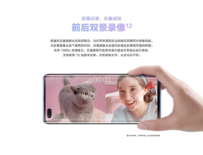 (華為nova7系列前后雙景錄像示意圖)