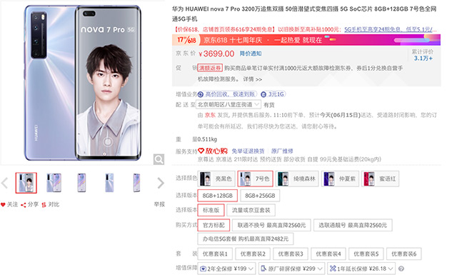 (華為nova7 Pro京東華為官方旗艦店截圖)