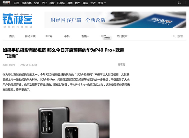 進(jìn)入6月以來,網(wǎng)上除了各種618信息刷屏之外,華為P40系列手機(jī)又迎來一波密集的媒體報(bào)道,這回的主角自然是6月6日正式開售的華為P40 Pro+,坐擁全球最強(qiáng)10倍光變,100倍雙目變焦。來自極果的評(píng)論文章表示,華為P40 Pro+這次加入的100倍雙目變焦不得不說算是一個(gè)亮點(diǎn),用過百倍變焦后,才知道奧林匹克塔上方的奧運(yùn)五環(huán)是一直在轉(zhuǎn)動(dòng)的;新媒體差評(píng)推送的內(nèi)容稱,華為P40 Pro+是真正的拍照旗艦,隨著P40Pro+的發(fā)布, DXO分?jǐn)?shù)勢必又會(huì)再度上漲。