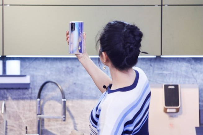 除了極致的影像體驗(yàn)之外,榮耀30系列極具時(shí)尚潮流屬性的外觀和配色設(shè)計(jì)也深得主持人的喜愛(ài)。尤其是伊一對(duì)榮耀30系列的流光幻鏡新配色十分偏愛(ài),還在現(xiàn)場(chǎng)體驗(yàn)了使用其背部照鏡化妝的功能,因?yàn)樵撆渖哂戌R面光影的效果,拿來(lái)補(bǔ)妝也能清晰可見(jiàn)。